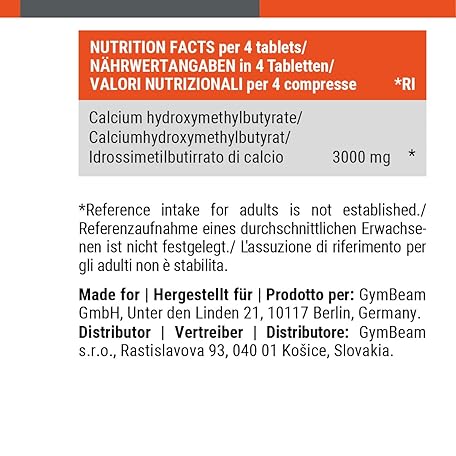 Thông tin sản phẩm GymBeam HMB Supplement - High Dose HMB Dietary Supplement with Calcium Hydroxymethyl Butyrate, Pure Leucine Metabolite for Muscle Building, Supports mTOR and BCAA Synthesis, 150 Tabs