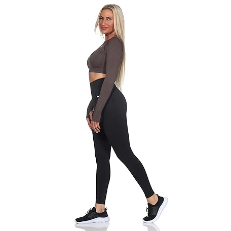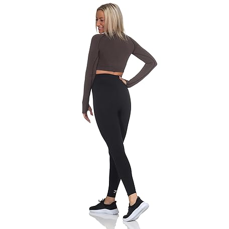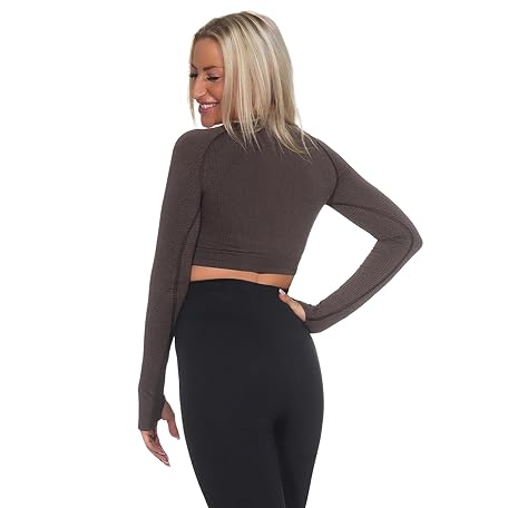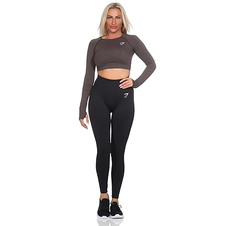 GYMSHARK Vital Women's Seamless 2.0 Long Sleeve Crop Top, Dark brown mottled