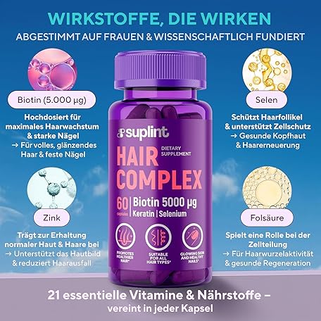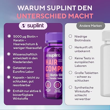 Thương hiệu SUPLINT là cái tên nổi tiếng được rất nhiều khách hàng trên thế giới chọn lựa. Với kiểu dáng đẹp mắt, sang trọng, sản phẩm Hair Vitamins with Biotin High Dose 5000 mcg - Hair Vitamins Hair Loss with Zinc Selenium, Keratin, Vitamin A C D E B12 for Hair, Skin, Nails - Hair Growth and Strengthening Complex (1 Pack) là sự lựa chọn hoàn hảo nếu bạn đang tìm mua một món cho riêng mình.