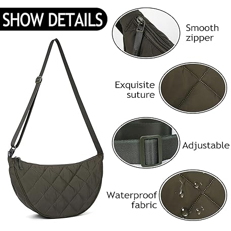 Sản phẩm HAIWILL Half Moon Crossbody Bag Women's Shoulder Bag Medium Nylon Quilted Bag Women's Puffer Bag Hobo Shopper Bag Shoulder Bag with Adjustable Shoulder Strap for University Work Travel Everyday đang được bán với giá ưu đãi là $20.3285 tại nước Đức.