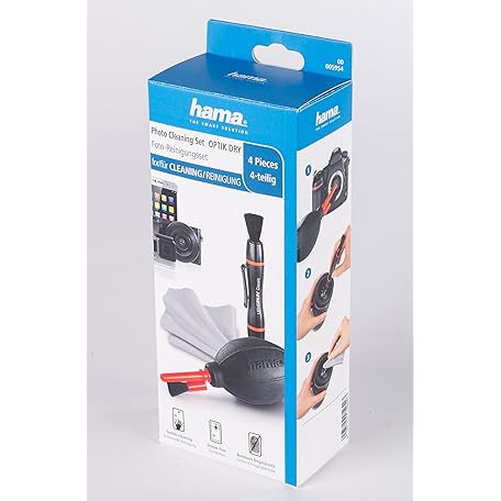 Thông tin sản phẩm Hama Camera Cleaning Kit 4 Pieces (Lens Filter and Camera Lens Cleaning with Lens Cleaning Pen and Lens Brush, Bellows with Cleaning Brush, Microfibre Cloth, for DSLR, Glasses, Binoculars)
