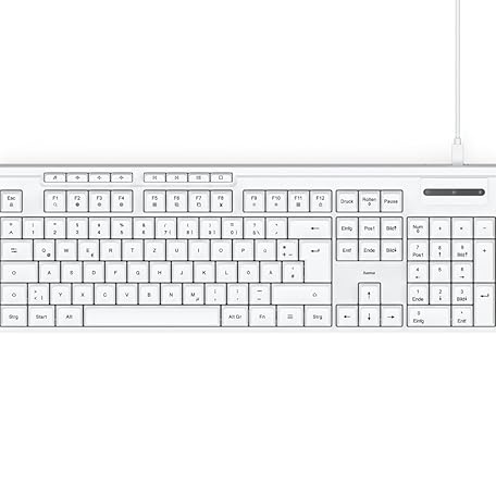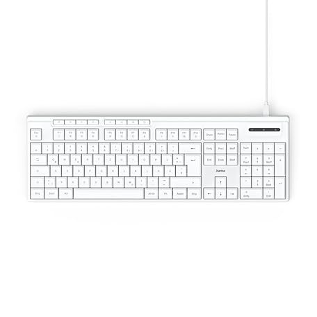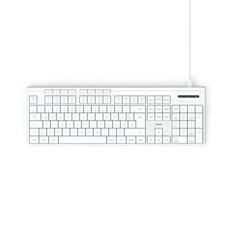 Thông tin sản phẩm Hama CK-200 Wired Keyboard (USB Keyboard, Ergonomic Typing Feel, Quiet Keys, Removable Cable, German QWERTZ Layout, Multimedia Keys, Assist Key for AI Assistants) White