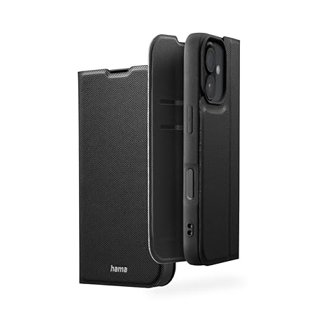 Hama Mobile Phone Case for iPhone 16 (Mobile Phone Case for Standing, Case with Card Slot, Extra Protection of Screen and Camera, with Magnet, Flip Case, Soft, Anti Fingerprint) Black