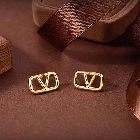 Thông tin sản phẩm Hanaoops Ohrringe für Damen - 925 Vergoldet Geometrischer Buchstabe V Ohrringe Hypoallergen Quadrate Ohrstecker - Modeschmuck Geschenke (Gold)