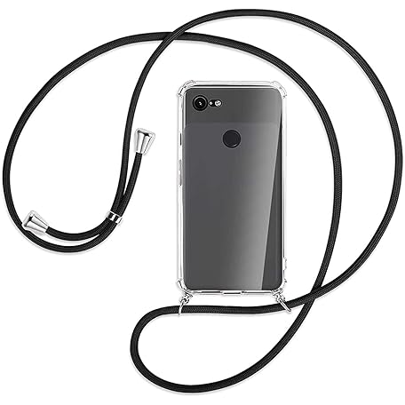 Handykette kompatibel mit Google Pixel 3 XL Hülle,Handyhülle Transparent Silikon Schutzhülle - Necklace Hülle mit Band Handy-Kette Case mit Necklace Schnur mit Kette zum Umhängen Case,Schwarz