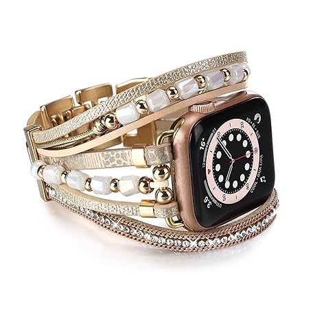 HARAVAL Boho-Perlenarmband, kompatibel mit Apple Watch, 44 mm, 45 mm, 49 mm, 42 mm, Serie 9, 8, 7, SE, Ultra 2, Serie 6, 5, 4, Damen, Leder, modisch, handgefertigt, mehrlagig, Wickelarmband für iWatch