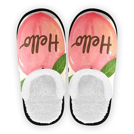 • Hausschuhe für Herren und Damen, Korallen-Fleece, rutschfeste Gummisohle, warme Hausschuhe, Hotel, Reisen, Schlafzimmer, Flugzeug, Party, Größe M, Hello Cartoon Cute Peach, Medium