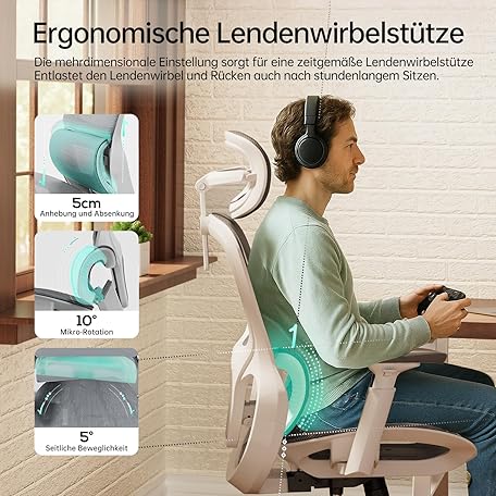 Sản phẩm Hbada P2 Ergonomic Office Chair, Office Chair with 3D Lumbar Support, Mesh Chair with 3D 360° Rotating Armrests & 3D Headrest, 135° Continuous Tilt Function, White đang được bán với giá ưu đãi là $383.4075 tại nước Đức.