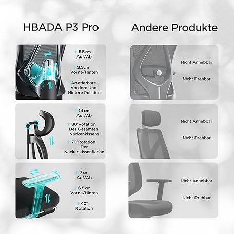 Thông tin sản phẩm Hbada P3 Pro Ergonomic Office Chair, Desk Chair with Adjustable Headrest, Lumbar Support, Large Tilt Angle, Elastic Mesh Backrest, Black
