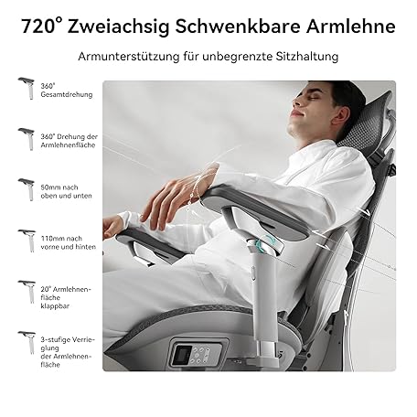 Sản phẩm Hbada X7 Intelligent Ergonomic Office Chair with Fully Automatic Lumbar Support, 4D Adjustable Headrest, 720° Adjustable Armrests, Vented Seat Cushion, Swivel Function, Grey đang được bán với giá ưu đãi là $1672.2126 tại nước Đức.