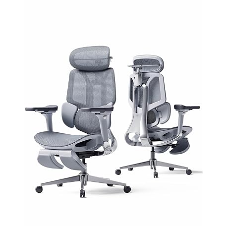 • Hbada X7 Intelligent Ergonomic Office Chair with Fully Automatic Lumbar Support, 4D Adjustable Headrest, 720° Adjustable Armrests, Vented Seat Cushion, Swivel Function, Grey