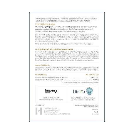 Sản phẩm Health Labs Care MyKids Probiotic Probiotic for Children, 30 Portion Bags, Support During or After Antibiotic Therapy, 2 Billion Bacillus Subtilis Bacteria, 30 Days of Use đang được bán với giá ưu đãi là $34.3132 tại nước Đức.
