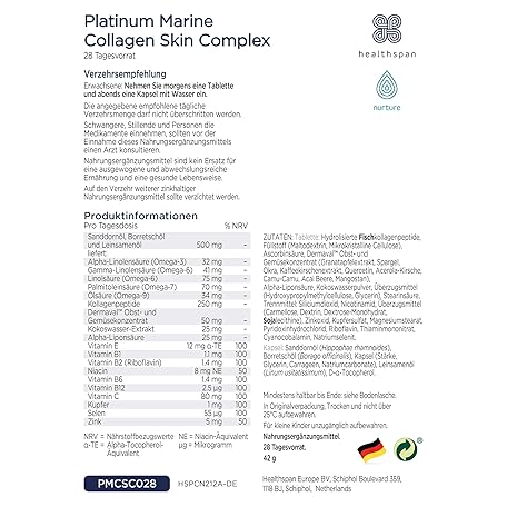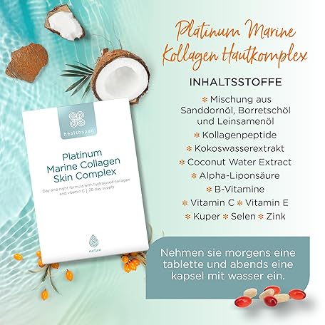 Sản phẩm Healthspan Platinum Marine Collagen Skin Complex (28-Day Supply) | High Quality Day & Night Preparation | Contains Marine Collagen Peptides, Vitamin C & Micronutrients | Supports Skin Health đang được bán với giá ưu đãi là $34.5421 tại nước Đức.