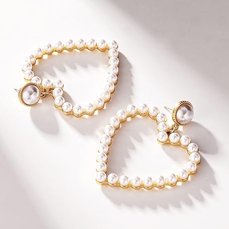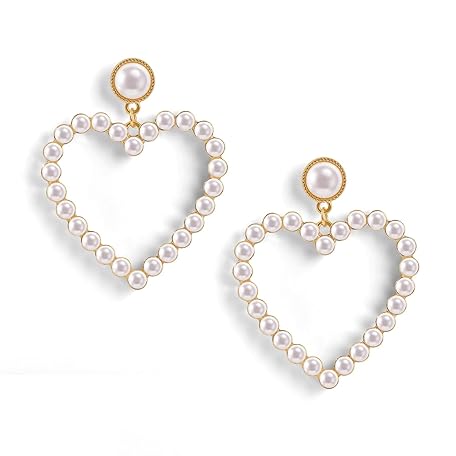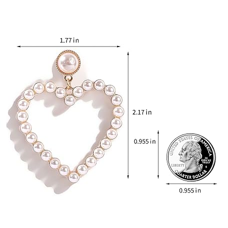 Thông tin sản phẩm Heart Earrings, Heart Hanging Earrings, Women's Hanging Hoop Earrings, Pearl Hoop Earrings for Women, Pearl Earrings, Retro Earrings, Heart-Shaped Earrings, for Women and Girls, Jewellery Gift, Alloy