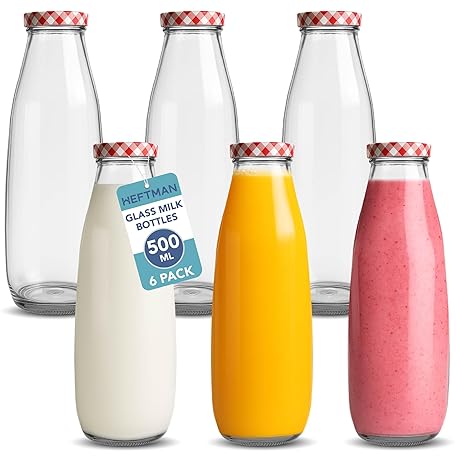 Sản phẩm HEFTMAN Glass Milk Bottles with Lids Empty 500ml Set of 6 Airtight Glass Milk Bottles with Red Gingham Lid for Drinks HM3301 đang được bán với giá ưu đãi là $26.9775 tại nước Đức.