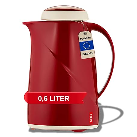 Helios Wave Thermos Flask Dark Red 0.6 L - 6 Hours Hot - Keeps Drinks Hot & Cold - Dishwasher Safe - Lightweight, Durable Plastic Coating - Ideal for Coffee & Tea