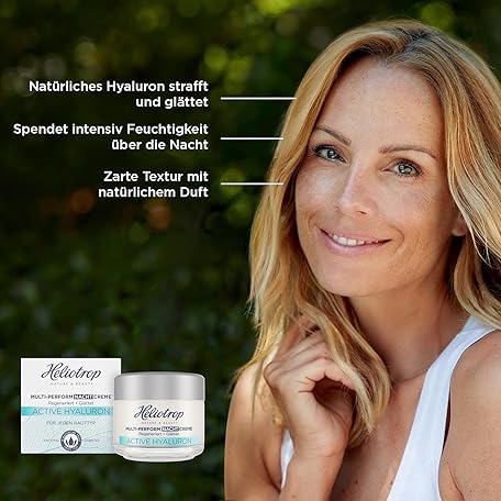 Thông tin sản phẩm Heliotrop Anti-Ageing Night Cream for All Skin Types, Vegan Natural Cosmetics, Regenerated and Smoothed Skin, Multi-Perform Night Cream with Natural Hyaluronic Acid, Active Hyaluron, 1 x 50 ml