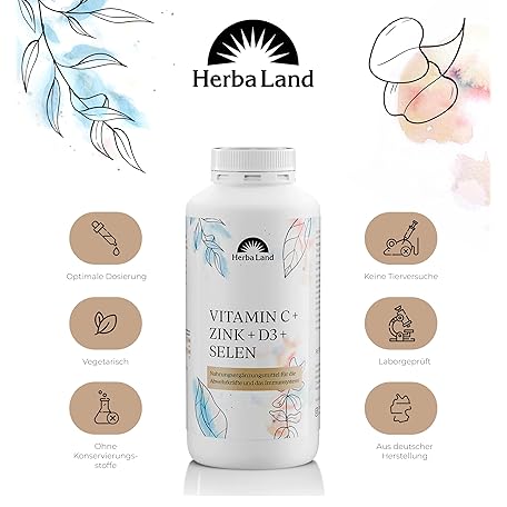 Thương hiệu Herbaland là cái tên nổi tiếng được rất nhiều khách hàng trên thế giới chọn lựa. Với kiểu dáng đẹp mắt, sang trọng, sản phẩm Herbaland® Vitamin C Zinc Selenium D3 Tablets, 365 Tablets for 1 Year, Vegetarian, Vitamin C 1000 mg, Zinc 10 mg, 500 IU Vitamin D3 & 55 µg Selenium, Laboratory Tested Quality, Made in Germany là sự lựa chọn hoàn hảo nếu bạn đang tìm mua một món cho riêng mình.