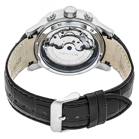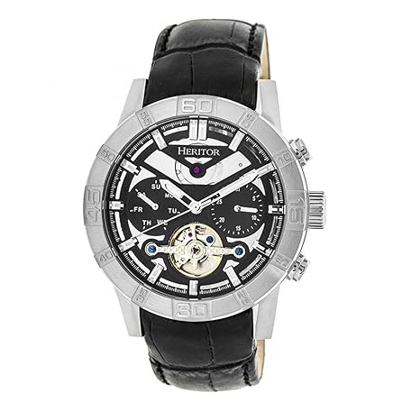 Thông tin sản phẩm Heritor Hamilton Automatic Half Skeleton Watch with Leather Strap, Black/Silver/Black/Silver Sku: Herhr4102, Strap.