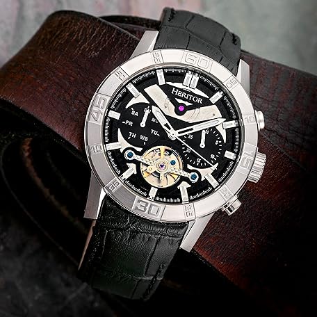 Sản phẩm Heritor Hamilton Automatic Half Skeleton Watch with Leather Strap, Black/Silver/Black/Silver Sku: Herhr4102, Strap. đang được bán với giá ưu đãi là $219.7113 tại nước Đức.