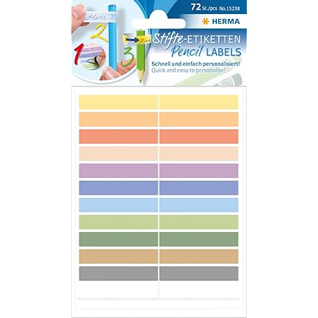 Herma 15238 60 x Children’s Paper Name Stickers for Pen Labelling / Multi-Coloured / 10 x 46 mm / Permanent and Self-Adhesive