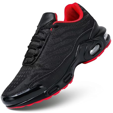 Herren Laufschuhe Air Low Top Schuhe für Männer Basketball Sneakers Mode Tennis Sport Fitness Cross Sneaker, schwarz / rot, 44 EU