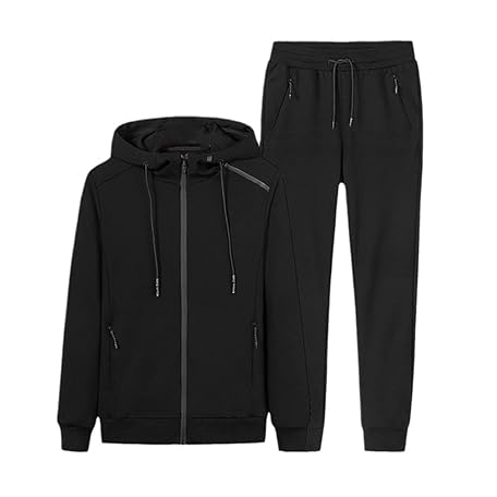 Herren Sport Atmungsaktiv Training Sportswear Jogging Anzüge Trainingsanzug Fitness Workout Running Jacke 2 Stück Set, Herren Schwarz, M