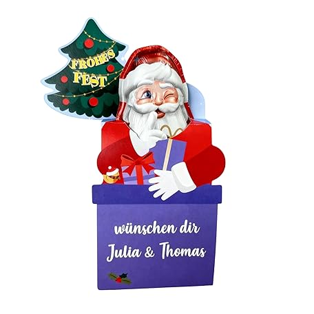 Herz & Heim Personalised Milka Chocolate Santa Claus with Gift Box - Chocolate Santa Claus with Desired Text as a Christmas Gift - Individually Printed