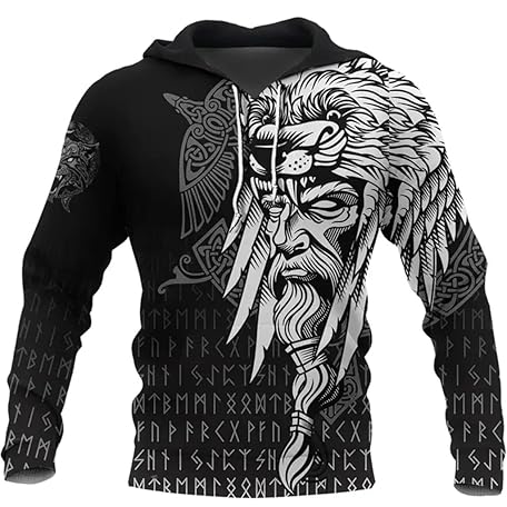 HFUHLK Unisex 3D Gedruckt Wikinger Odin Rabe Kapuzenpullover, Nordische Mythologie Tätowierungen Keltischer Knoten Wolf Rune Pullover Sweatshirt Beiläufig Harajuku Streetwear,Hoodie,5XL