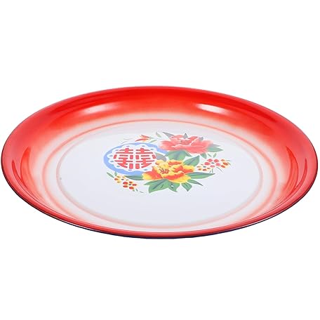 HIAKDOFT Multifunktionale Emaille Servierplatte 35cm Chinesischer Stil Runder Dekorativer Dessertteller für Obst Snacks und Kuchen Haushalts und Restaurantgeschirr