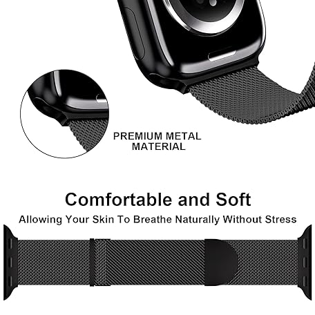 Thông tin sản phẩm Higgs Replacement Strap Compatible with Apple Watch Strap 45 mm 44 mm 42 mm for Women / Men, Dual Magnetic Adjustable Bracelets for iWatch Series 7 6 SE 5 4 3 2 1, Black Smooth Stainless Steel Metal