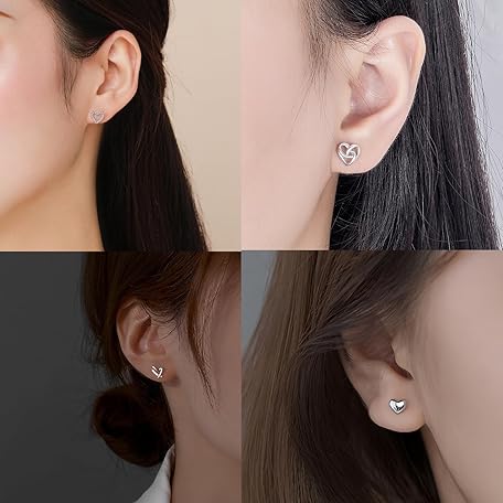 Sản phẩm Hinvan 4 Pairs 925 Sterling Silver Earrings Heart Stud Earrings 925 Silver Earrings Heart Stud Earrings Hypoallergenic Small Sleeping Women's Earrings for Women Girls đang được bán với giá ưu đãi là $13.9956 tại nước Đức.