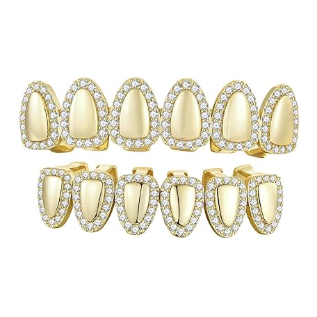 • Hip Hop Grills Iced Out Diamant-Zähne Grillz Für Männer Und Frauen, Cosplay Party Zähne Grillz Schmuckzubehör(Gold)
