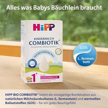 Thông tin sản phẩm HiPP Combiotik 1+ Children's Milk (4 x 600 g), from 1 Year Old, with Natural Lactic Acid Cultures and Fibre, Calcium, Vitamins C and D, for a good gut feeling