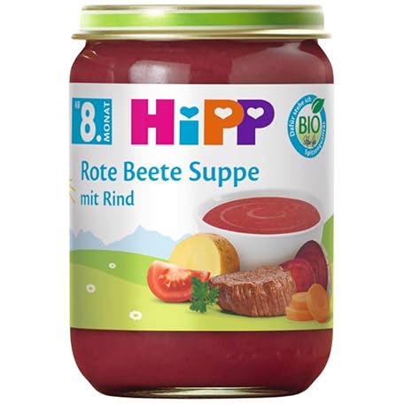 Thông tin sản phẩm HiPP Organic Beetroot Soup with Beef (6 x 190 g), from 8 Months, No Added Salt, Gluten-Free, with Omega 3, in Best Organic Quality