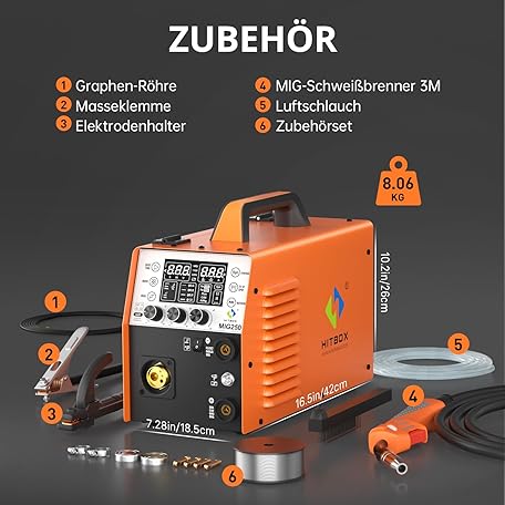 Sản phẩm HITBOX 6 in 1 Welding Machine without Gas, 250A 240V LCD Digital MIG Welding Machine Cored Wire/MAG/MIG Protective Gas Welding Machine/MMA/Lift TIG, Aluminium Welding Machine, 2 Year Warranty đang được bán với giá ưu đãi là $483.6875 tại nước Đức.