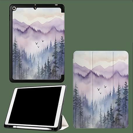• Hülle für iPad Air 13 Zoll (M3/M2-2025/2024) Schutzhülle mit Stifthalter, Ultra Schlank Schutzhülle mit Trifold Ständer und Auto Schlaf/Wach,Berge Wald