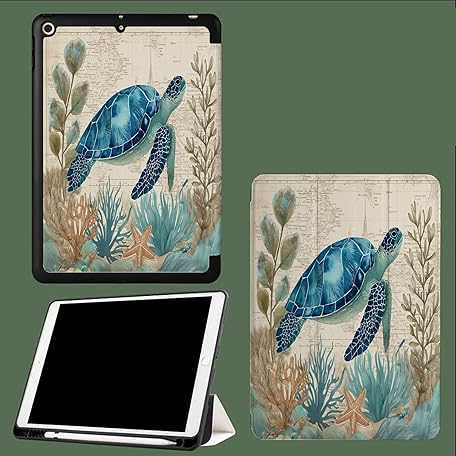 Hülle für iPad Air 13 Zoll (M3/M2-2025/2024) Schutzhülle mit Stifthalter, Ultra Schlank Schutzhülle mit Trifold Ständer und Auto Schlaf/Wach,Schildkröte Pflanzen