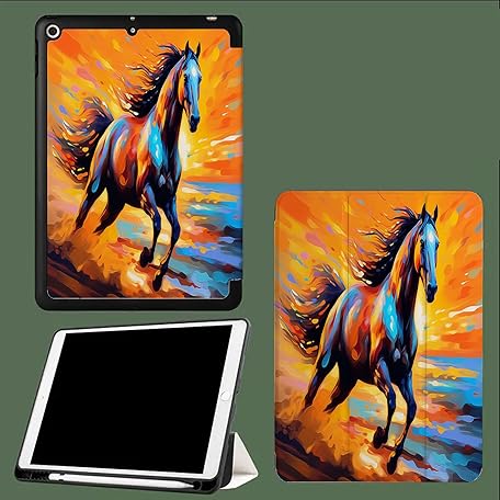 Hülle für iPad Air 13 Zoll (M3/M2 2025/2024), Trifold Ständerhülle für iPad Air 13" M3 2025/ M2 2024, Dünn Leicht Smart Cover mit Auto Wachen/Schlafen,Aquarellpferd