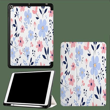 Hülle für iPad Air 13 Zoll (M3/M2 2025/2024), Trifold Ständerhülle für iPad Air 13" M3 2025/ M2 2024, Dünn Leicht Smart Cover mit Auto Wachen/Schlafen,Blau Rosa Blumenmuster
