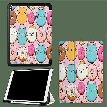 Hülle für iPad Air 13 Zoll (M3/M2 2025/2024), Trifold Ständerhülle für iPad Air 13" M3 2025/ M2 2024, Dünn Leicht Smart Cover mit Auto Wachen/Schlafen,Katze Donut