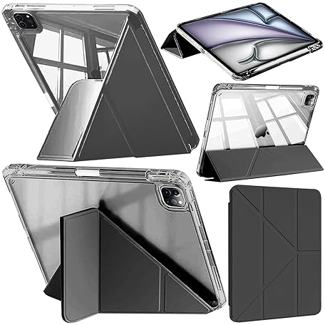 Hülle Kompatibel mit iPad Air 11 Zoll M3/M2 (2025/2024), iPad Air 5./4. Gen 2022/2020, iPad Pro 11 Zoll (2018-2022) mit Stifthalter, 6-in-1 Mehrere Ständer, Schwarz