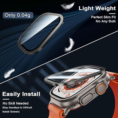 Thông tin sản phẩm Hoerrye Screen Protector for Apple Watch Ultra/Ultra 2 49 mm Film, (2023/2022) Screen Protector Made of Stainless Steel Frame, Bubble-Free, Full Coverage, Anti-Dust Compatible with iWatch Ultra