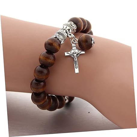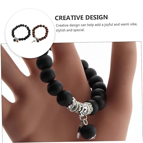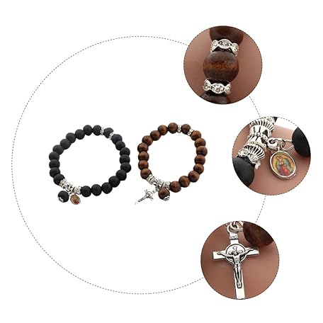 Thông tin sản phẩm Holibanna Pack of 2 Wooden Beads Bracelet Cross Pendant Wrist Chain Couple Bracelets Valentine's Day Jewellery for Lovers (Black Coffee), agarwood, Plastic