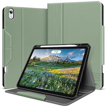 HOLIMET iPad Air 11 Inch M3 (2025) Case with Pencil Holder, iPad Air 6/5/4 Case (2024/2022/2020) 10.9 Inch PU Leather Protective Case TPU Back Shockproof Cover Car Sleep/Wake Multi-Angle Stand Green