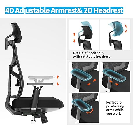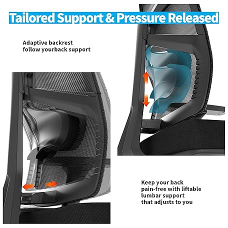 Thông tin sản phẩm HOLLUDLE Ergonomic Office Chair with Adaptive Backrest, Desk Chair with 4D Armrests, Adjustable Seat Depth, Lumbar Support and 2D Headrest, Breathable Mesh Executive Chair, Black