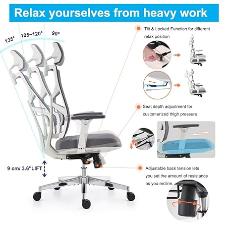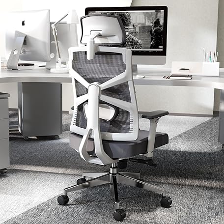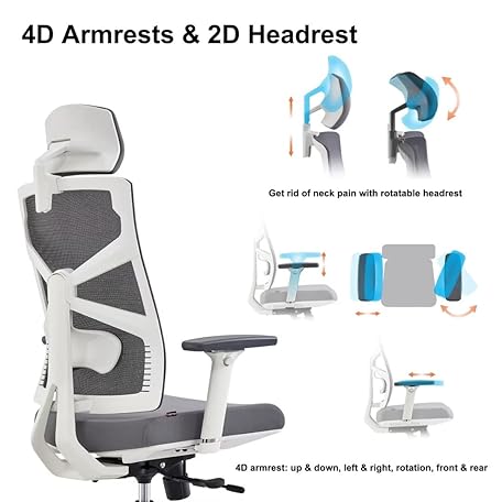 Thông tin sản phẩm HOLLUDLE Ergonomic Office Chair with Adaptive Backrest, Desk Chair with 4D Armrests, Adjustable Seat Depth, Lumbar Support and 2D Headrest, Breathable Mesh Executive Chair, White