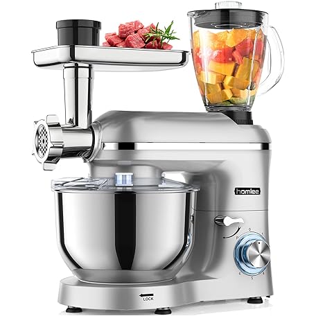 Thương hiệu homlee là cái tên nổi tiếng được rất nhiều khách hàng trên thế giới chọn lựa. Với kiểu dáng đẹp mắt, sang trọng, sản phẩm Homlee 3 in 1 Universal Food Processor 1800 W Multifunctional Kneading Machine 6-Level Speed Mixer, with Mincer, 1.5 L Juicer, 5.5 L Stainless Steel Bowl  là sự lựa chọn hoàn hảo nếu bạn đang tìm mua một món  cho riêng mình.
