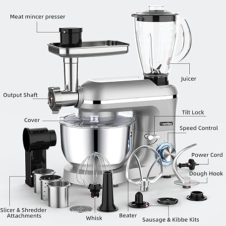 Sản phẩm Homlee 3 in 1 Universal Food Processor 1800 W Multifunctional Kneading Machine 6-Level Speed Mixer, with Mincer, 1.5 L Juicer, 5.5 L Stainless Steel Bowl đang được bán với giá ưu đãi là $248.9778 tại nước Đức.
