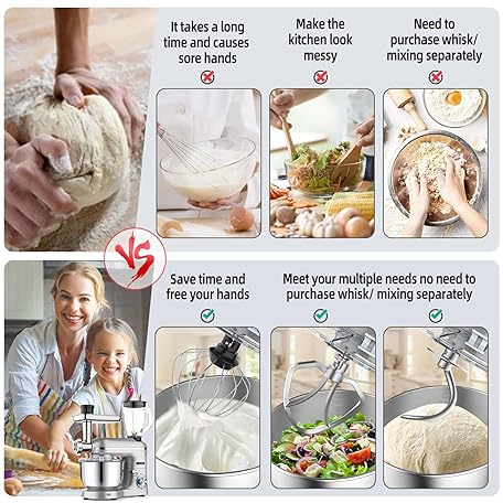 Thông tin sản phẩm Homlee 3 in 1 Universal Food Processor 1800 W Multifunctional Kneading Machine 6-Level Speed Mixer, with Mincer, 1.5 L Juicer, 5.5 L Stainless Steel Bowl